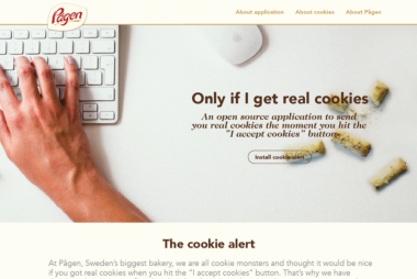 Cookies are great—the sugary, sweet kind, at least. The kind that websites store on your browser can get kind of annoying. Pågen, the leading bakery company in Sweden, has developed a new type of open-source website cookie banner that aims to make the alerts less annoying by offering a sample of real cookies if the user accepts. Since the implementation of the EU Cookie Directive, which requires sites to alert visitors when they store pieces of text on their device as they browse, there has been a large increase in the number of cookie alerts on the web. These banners at the top of websites can often be quite annoying, so Pågen thought it would be nice to offer real cookies in exchange.