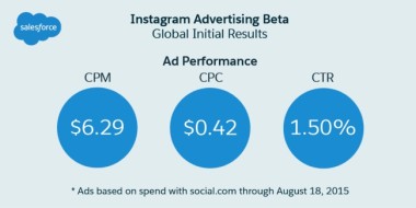 Salesforce analyzed the Instagram ad performance of 12 of its clients and found that the Facebook-owned photo- and video-sharing network fared better than its parent, albeit with a far smaller user base.