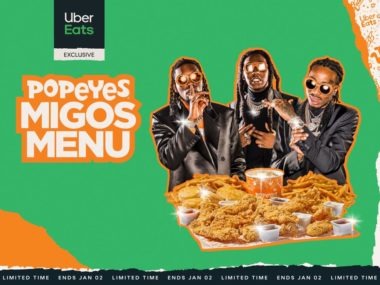 Migos is partnering up with Uber Eats and Popeyes to launch their very own “Migos Menu.” Each member of the group — Quavo, Offset and Takeoff — has curated a special order of their personal favorites for the menu. Migos have been Popeyes fans for long before the partnership, rapping about Popeyes in their hit single “Stir Fry,” and showing love for the food chain numerous times. The “Migos Menu” will feature four different options, and will be delivered exclusively through Uber Eats. Delivery is available from December 6 to January 2.