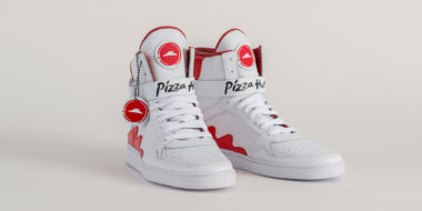 Just in time for March Madness, Pizza Hut has created 64 pairs of limited edition sneakers that use geolocation to order pizza for the wearer. All you have to do is press a button on the tongue of the shoes, and the sneakers connect with a Pie Tops app to automatically place an order. The promotion is intended to emphasize how easy it is to order a pizza from Pizza Hut via multiple digital devices and modes, not just the exclusive shoes.
