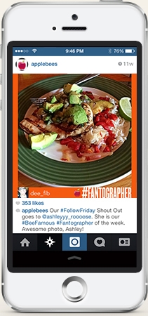 While more brands have been stocking up on user-generated and influencer content the past few years, Applebee’s latest campaign is an interesting example of a marketer going all in on the tactic to fuel its social strategy. To participate, consumers must first opt in via a microsite that gives Applebee’s permission to post content to its account. Then, anything that those users post with #Applebees or the campaign’s #Fantographer hashtags is up for grabs for posting. Each posted photo is framed with a branded border.