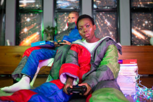 The collection boasts ‘The Controller Coat’; a cape with pockets to hold a TV remote, phone, gaming controller; ‘The Gaming Bag’; an all in one sleeping bag suit with arm and leg holes; and ‘The Boxset Blanket’; a three-person blanket perfect for cozying up on the sofa.