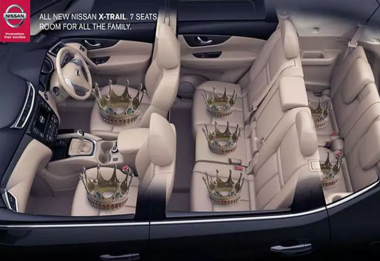 Nissan was one of the first brands to react to the news that Prince William and his wife, the Duchess of Cambridge (aka Kate), are expecting their second child. Just seven minutes after the news was announced, the Nissan Europe social and digital engagement team tweeted an existing ad, a picture of the interior of its X-Trail seven-seater vehicle, with a crown placed on each seat and the caption “Room for all the family” added.