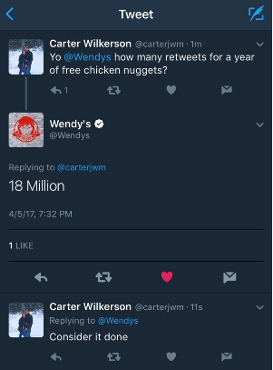Thus far, 2017 has proven to be a successful year for Wendy’s social media team. Between its infamously sassy tweets to McDonald’s and its 18 million retweet challenge to a fan, brands have a lot to learn from the fast food chain. When asked about its recent viral stardom, a Wendy’s spokesperson responded, “we see ourselves as a challenger with charm, so we can take advantage of opportunities to engage with our fans in very different way from our competitors.”