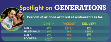 Generation Z, Millennials, Generation X and Baby Boomers total about 74 percent of the U.S. population, and make up a majority of foodservice consumers. Technomic released new data on the needs and behaviors of each generation. Speedy service is key for the youngest generation: for example, Gen Z places the highest importance on fast service at limited-service restaurants (54 percent), compared to just two-fifths of Millennials (40 percent), Gen Xers (41 percent) and Baby Boomers (43 percent).