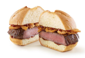 “The Venison Sandwich at Arby’s features a thick-cut venison steak and crispy onions topped with a juniper berry sauce on a toasted specialty roll,” Arby’s said. “The venison is marinated in garlic, salt and pepper and then cooked for three hours to juicy, tender perfection. The juniper berry sauce is a Cabernet steak sauce infused with juniper berries, giving the already unique sandwich another signature twist.”