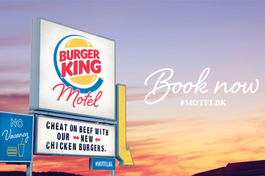 To promote their new chicken burgers, Burger King has created a motel where customers can “cheat on beef.” The rooms of an existing motel have been completely rebranded down to the slippers. Rooms for a customer and their three friends can be booked via Facebook. This campaign extends to radio, billboards, pre-roll video ads and social media.