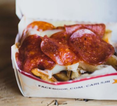A Carl’s Jr. location in Anaheim, CA, is testing Pepperoni Pizza Fries. The fries are made with pizza sauce, mozzarella cheese and topped with pepperoni, and served in the standard chili cheese boxes from Carl’s.