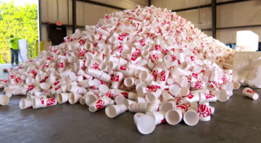 In 2012, Chick-fil-A began recycling polystyrene drink cups. The cups are great for keeping beverages cold, but they end up in the landfill if they’re not recycled. Chick-fil-A recycles the cups into benches, according to a video posted by the company on YouTube. The recycling process is complex and requires the cups to be sent to three facilities located across the country. A different recycling procedure is performed at each one until the finished product is a bench.