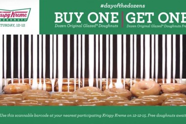 To advertise its “Day of Dozens,” Krispy Kreme customized the company’s donut glazer so that it would drip streams of icing in the form of a barcode. They then captured the ribbons of sugary goodness on a video that consumers can scan on their phone to get a coupon landing them their free second dozen.