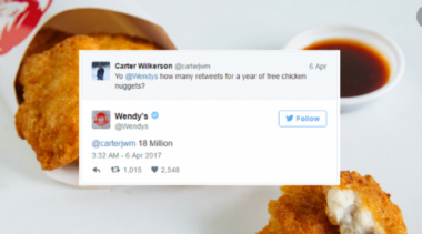 Among names like Barack Obama and LeBron James, Wendy’s was the only brand to make it into the top 10 favorite Tweets of 2017. After Wendy’s customer, Carter Wilkerson, asked how many retweets it would take for free nuggets, Wendy’s responded, “18 million,” and the internet went crazy. This comes at a time that Wendy’s has received a lot of positive feedback for their snarky brand personality on social media, specifically Twitter.