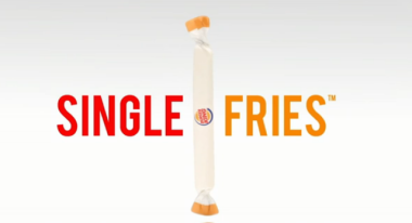 Burger King, obviously, isn’t the joint to go to if you’re watching your waistline, but now dieters might be willing to step inside the restaurant now that it’s introduced “Single Fries.” Claiming that its burgers are so huge that they leave no room in eaters’ tummies for a whole order of fries — the fast feeder in France is now offering the frites one-by-one, each individually wrapped like a piece of candy. And get this–they’re even served ins sizes small, medium and large and come with the sauce of your choice — ketchup, mayo, mustard, curry or BBQ. Um, and yes, this is an April Fool’s Joke. It was created out of Buzzman, France, with which BK France has pulled off some clever stunts even outside of the jokesters’ holiday.