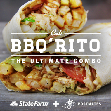 State Farm, Postmates and Chili’s teamed up to bring a Texas-sized burrito to your front door for free. In order to reinforce State Farm’s missions to bring “the best combinations together for your life”, Chili’s created a custom menu item called the “Cali BBQ’rito” bringing together Texas smoked chicken with a California touch to create the ultimate tailgating meal. Postmates delivered these tasty creations free of charge to the first 5,000 who ordered in the participating nine cities.