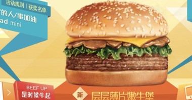KFC China launched its latest sandwich, the layered beef burger, made with six layers of thin-sliced beef, and topped with cheese, lettuce, and mushrooms on a sesame seed bun. KFC claims the multiple layers of meat locks in the moisture better than the traditional burger.