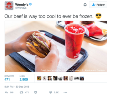Last week, the Wendy’s Twitter account posted this tweet about how the company only uses fresh beef. On Monday, however, a Twitter user named @NHride decided to come at the fast food social media account, accusing it of using frozen beef and calling it a joke.